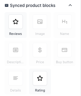 If you don’t see a Product reviews or Rating block on your page, access the + Insert new block menu from the left panel and add it to your Product page manually.